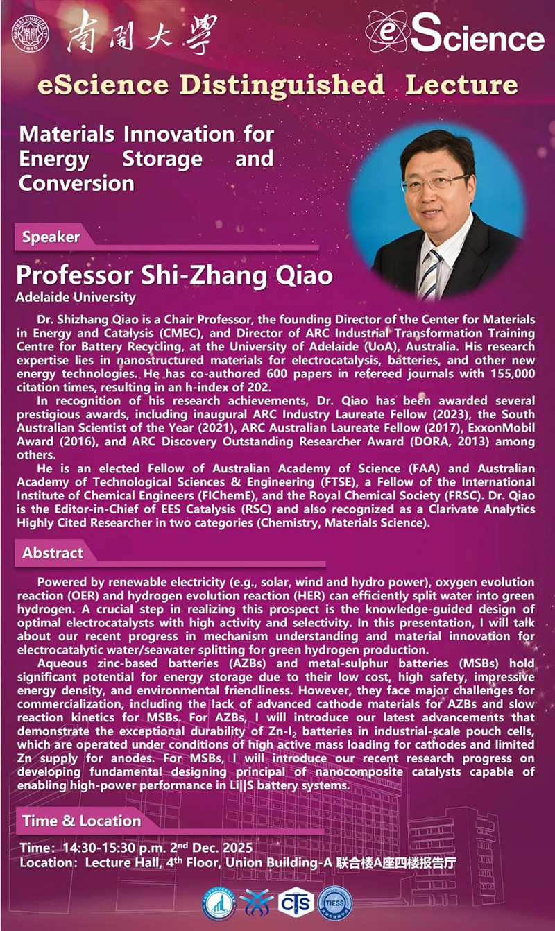 学术讲座预告丨Materials lnnovation for Energy Storage and Conversion