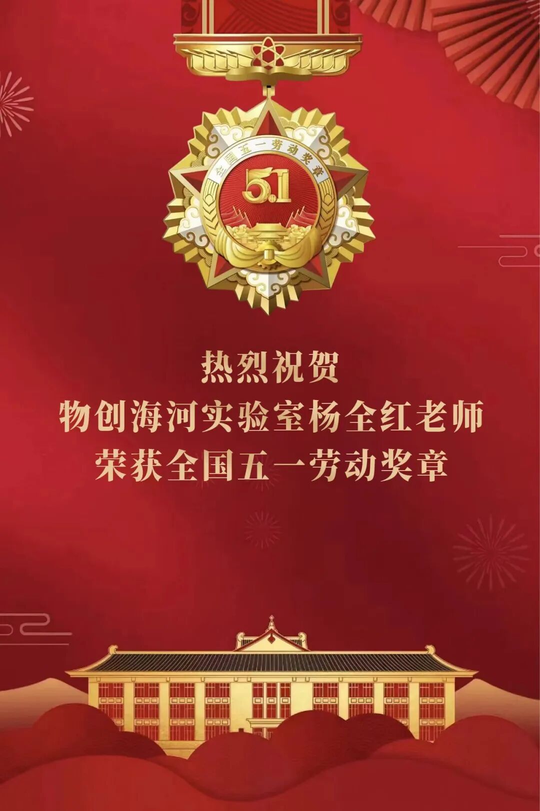 祝贺!物创海河实验室杨全红教授荣获全国五一劳动奖章