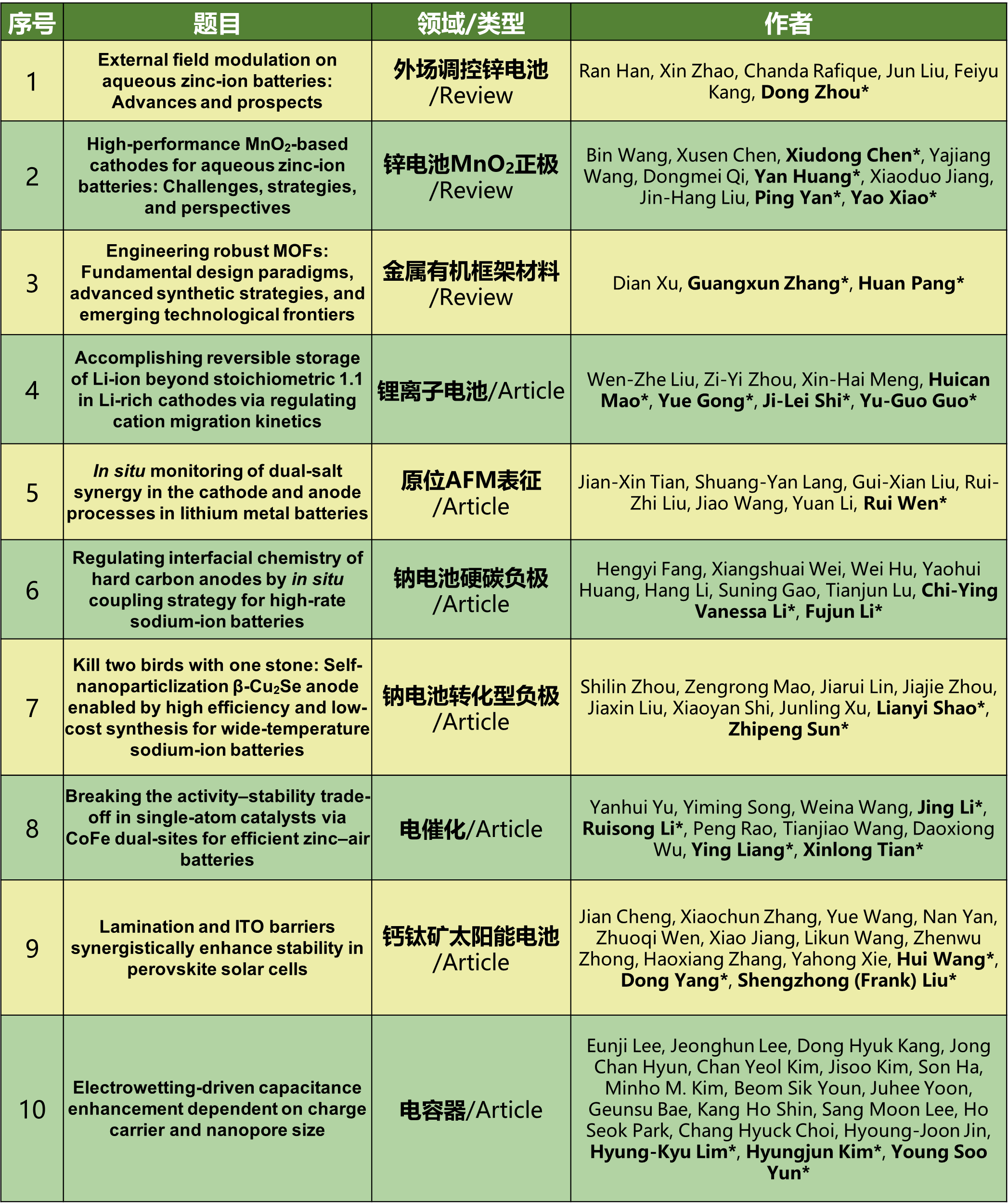 岁阑灯影密,案上墨香稠。eScience Energy首期正式上线:Research Article 7篇、Review 3篇。本期内容包含了“二次电池、原位表征、电容器、电催化、钙钛矿太阳能电池、MOF材料前沿”等内容,编辑部对此进行了汇总,欢迎大家阅读、分享、下载。感谢编委会、各位作者、审稿人、读者以及其他相关人员对eScience Energy的大力支持!