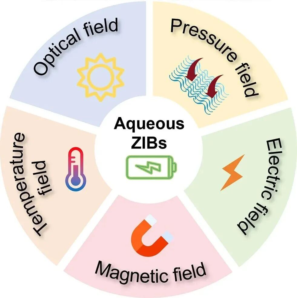 2. 概述了外场对水系锌离子电池中电极和电解质存在问题的解决方案;