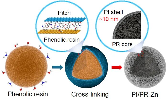 1. 利用酚醛树脂与沥青在碳化过程中的交联缩合反应,构筑稳定的界面互锁结构;