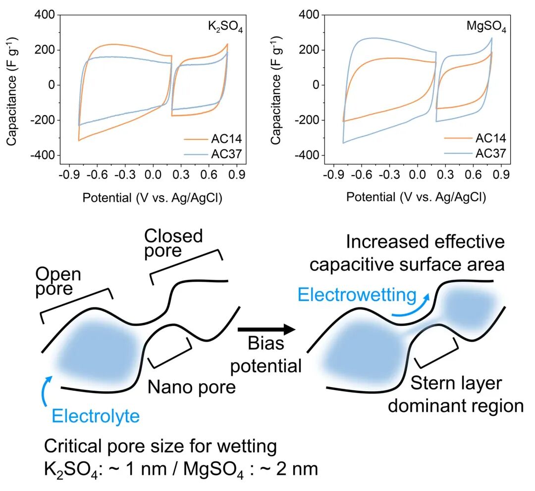 2. 阐明电荷载体类型和活性炭孔径尺寸是电润湿效应的两个重要影响因素;